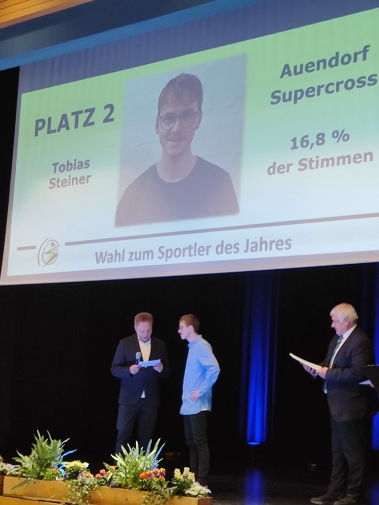 Bei der Wahl zum „Sportler des Jahres“ wurde Tobias Steiner Zweiter in der Wertung der Einzelsportler. Mit dem Titelgewinn in der deutschen Supercross Series 2025 errang unser Auendorfer Vereinsmitglieder 16,8% der Stimmen bei der Wahl durch die „NWZ“ .